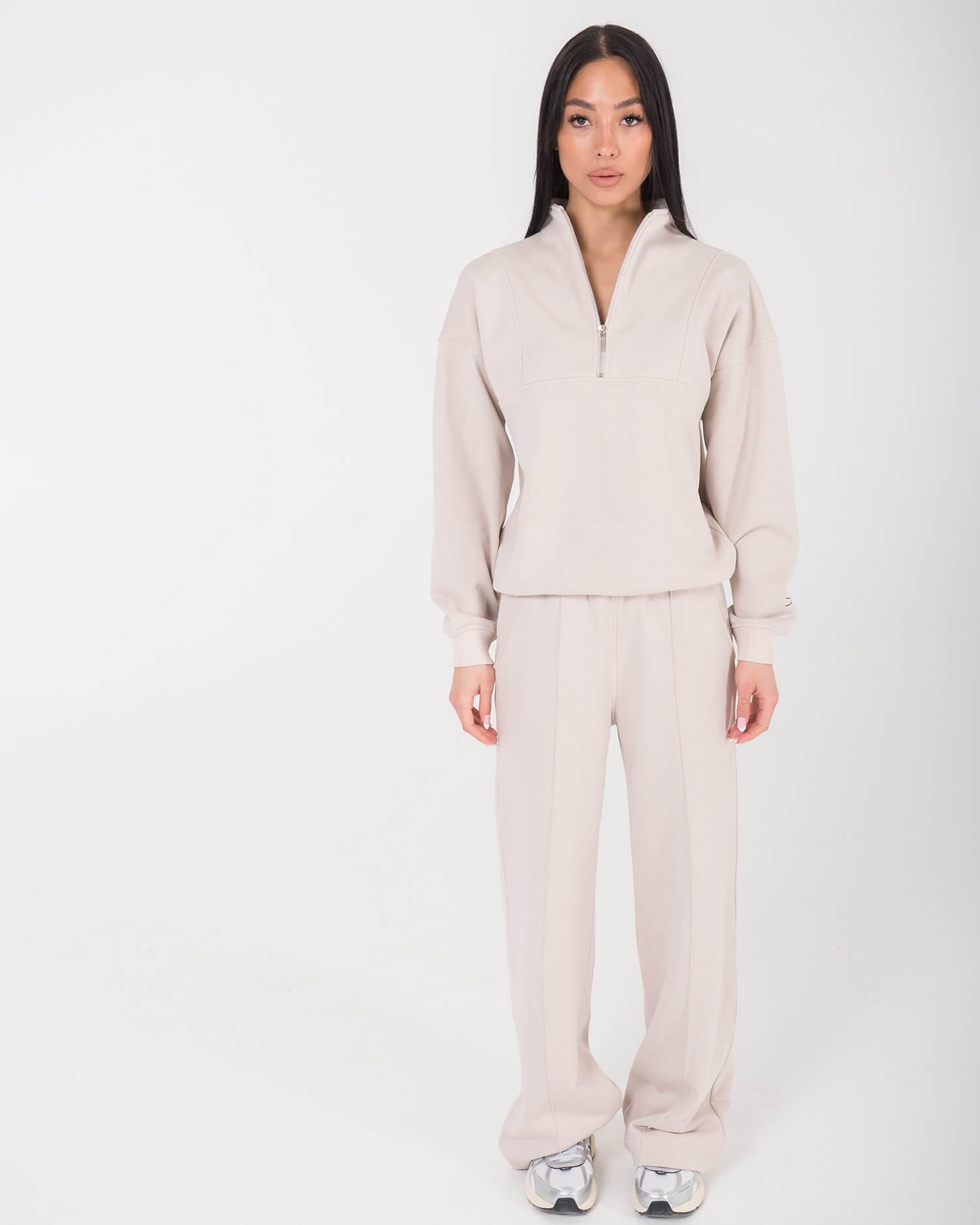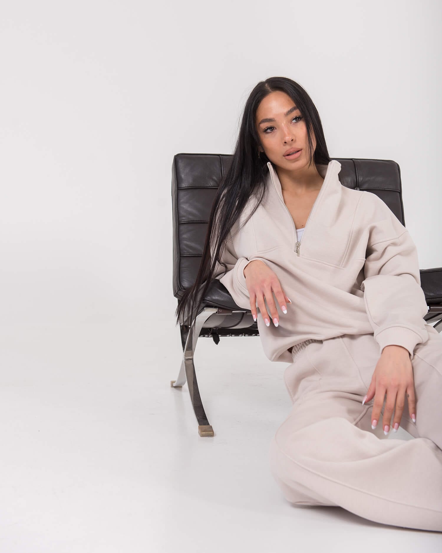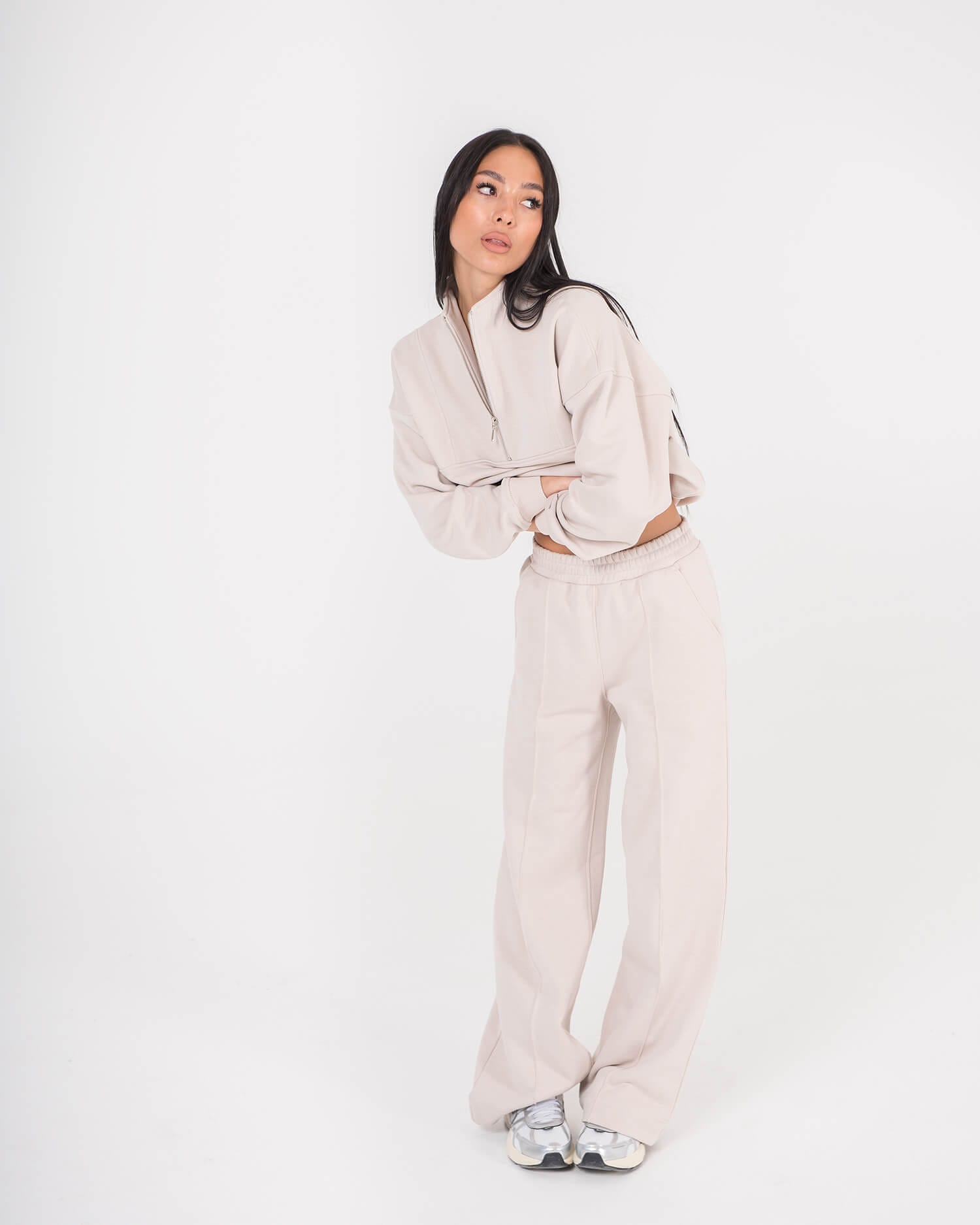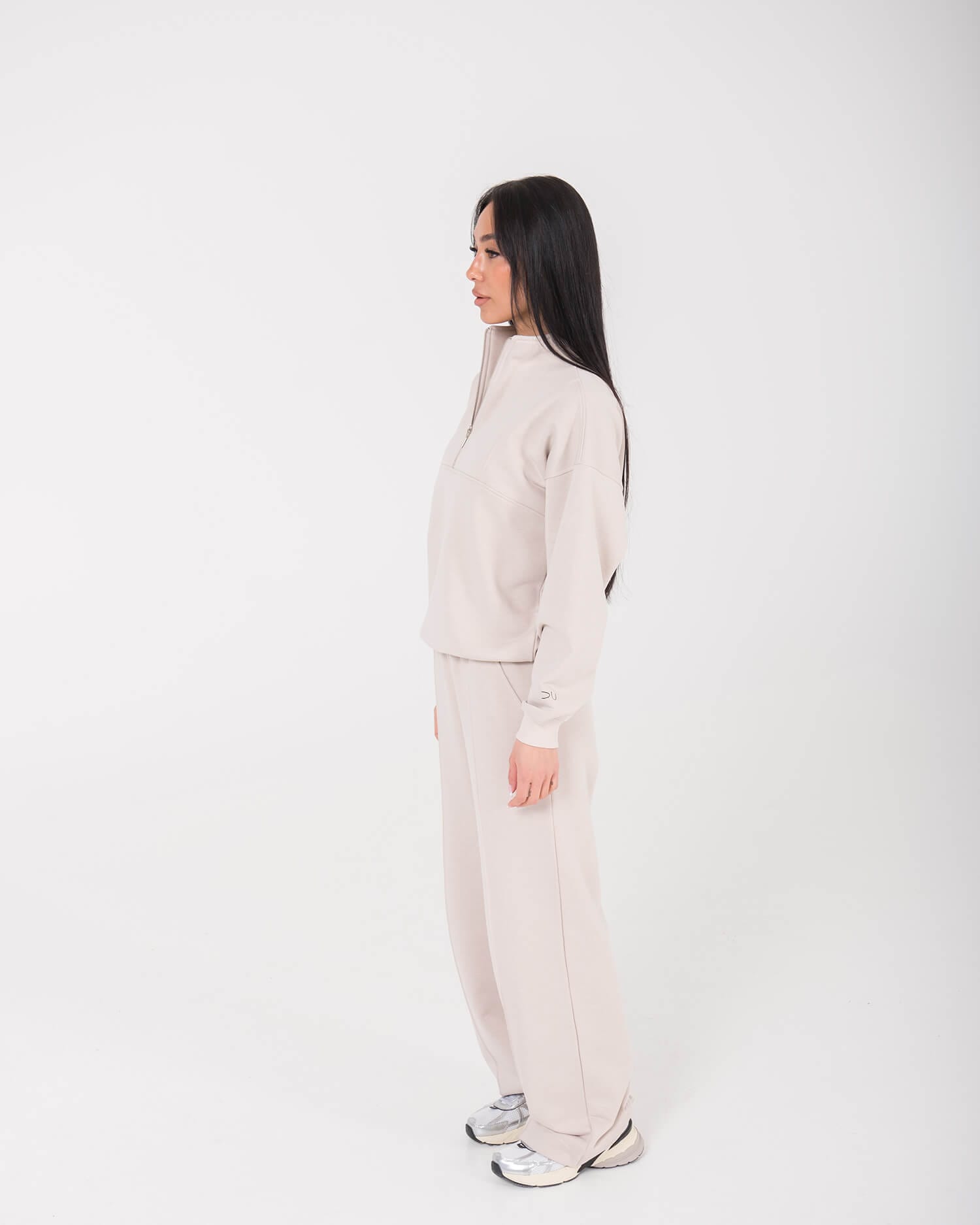 Atraskite komforto ir stiliaus balansą su vienu populiariausių mūsų laisvalaikio kostiumų modelių moterims. Dviejų dalių, lengvas ir šviesus lyg vasaros rytas – sukurtas judėjimo laisvei, jaukumui ir kasdieniam patogumui. Puikiai tiks tiek ramiam laikui namuose, tiek aktyviai dienai mieste. Tai universalus „must-have“ pasirinkimas Jūsų laisvalaikio garderobui. Nuotraukose pavaizduotas cream spalvos laisvalaikio komplektas. Komplektą sudaro džemperis su užtrauktuku ir plačios kelnės Luna.